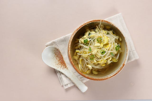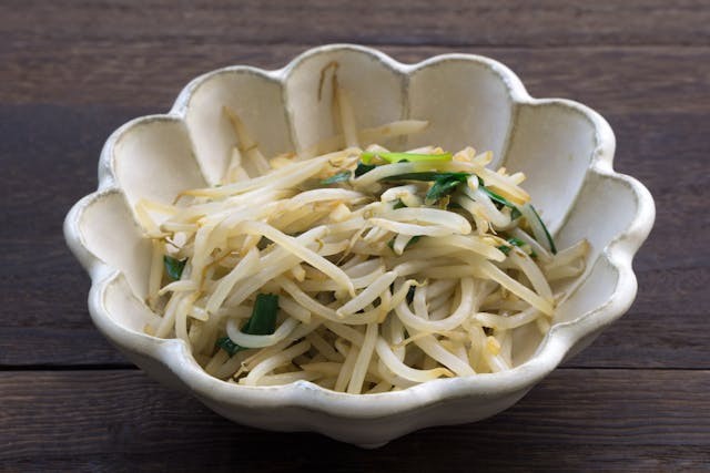 綠豆芽,廣東人稱為細豆芽,由綠豆浸泡而成。細豆芽含豐富纖維素,能通便清腸,及減少脂肪生成,高纖維、低熱量,是減肥瘦身的好食物。