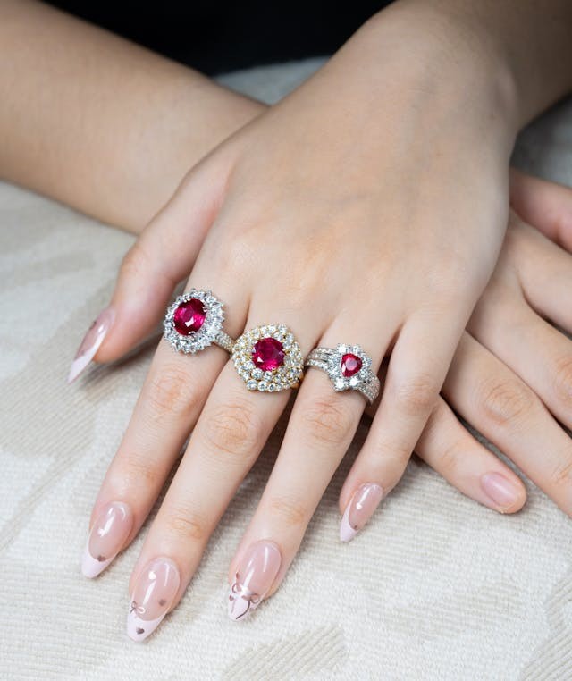 戒指:佩戴得好看與否,除了設計本身,很大程度取決於手指長短纖細度、骨節的比例。例如手指偏短的客戶,就不適合戴戒面太寬、太方或太厚重的款式,容易把手指顯得更短。相反地,橢圓形、馬眼形、長cushion等能拉長視覺線條的造型,反而更能修飾手型。