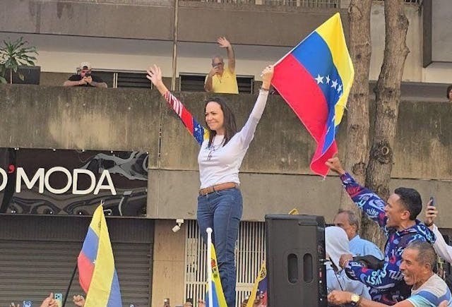 1)支持馬查多(Maria Machado)。她於2014年國內示威期間領導反馬杜羅示威活動;並在一年之後,讓她代表反對派參加2024年總統選舉,但她於2023年6月被委內瑞拉審計長辦公室取消其參選資格。