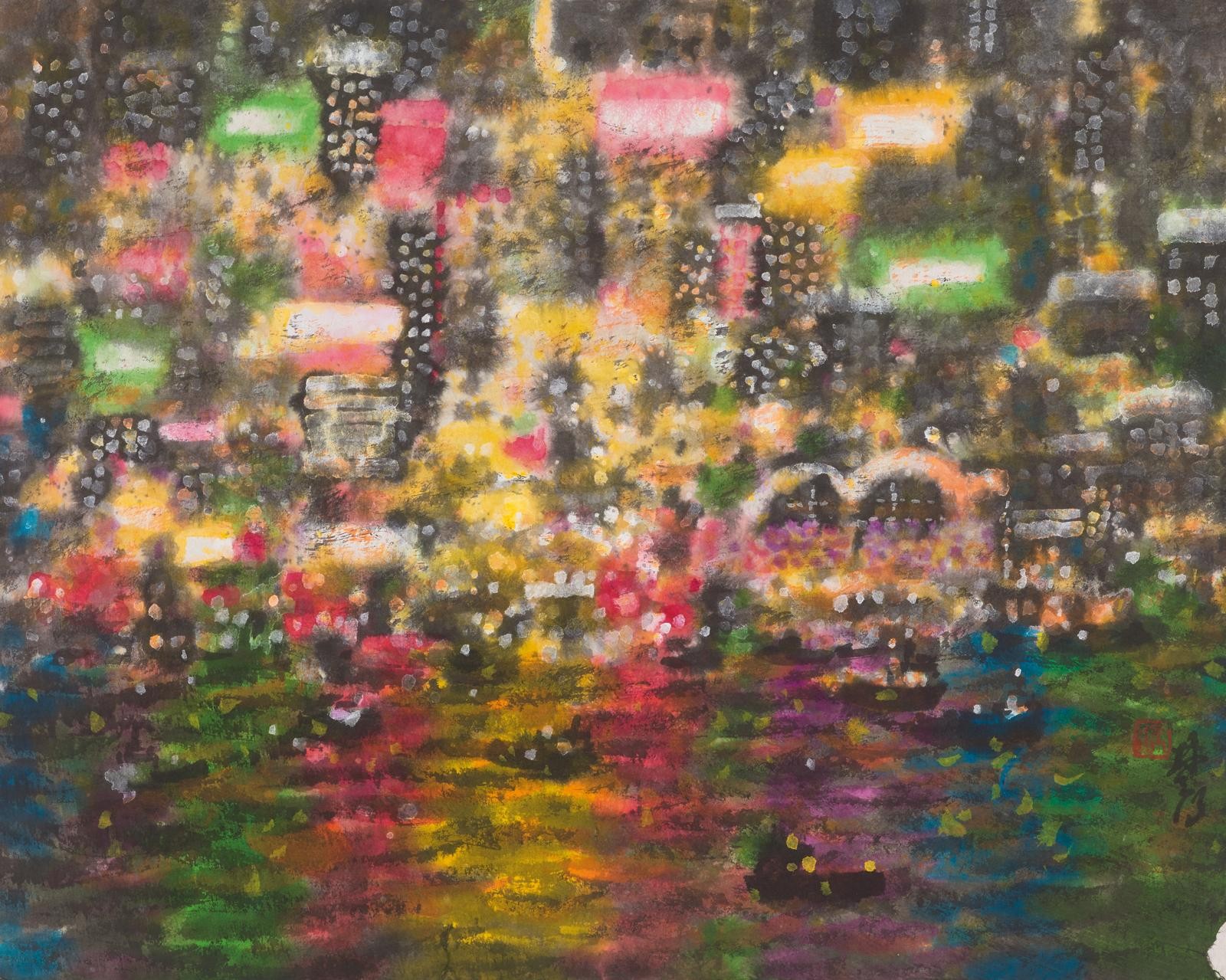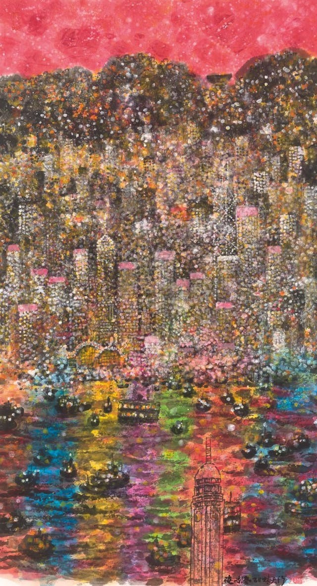 港島寶雲道是世界十大夜景之一,俯瞰高樓林立的豪宅延至維港的斑斕燈光,港人生活真真切切,這幅浮動的美妙被香港美術協會主席林天行用畫筆定格,他一口氣創作了主題「夜·香港」畫展正在中環舉行。