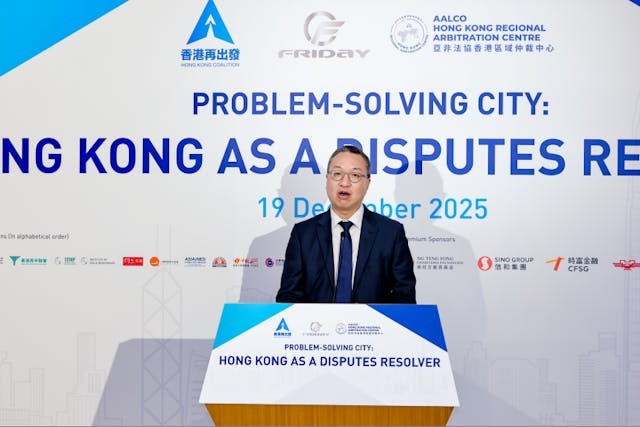 林定國在會上發言,強調香港作為全球爭議解決中心,擔當東西方文化橋樑的角色連接國際社會,為處理國家之間、國家與外國國民,以及國際商業爭端提供新途徑。