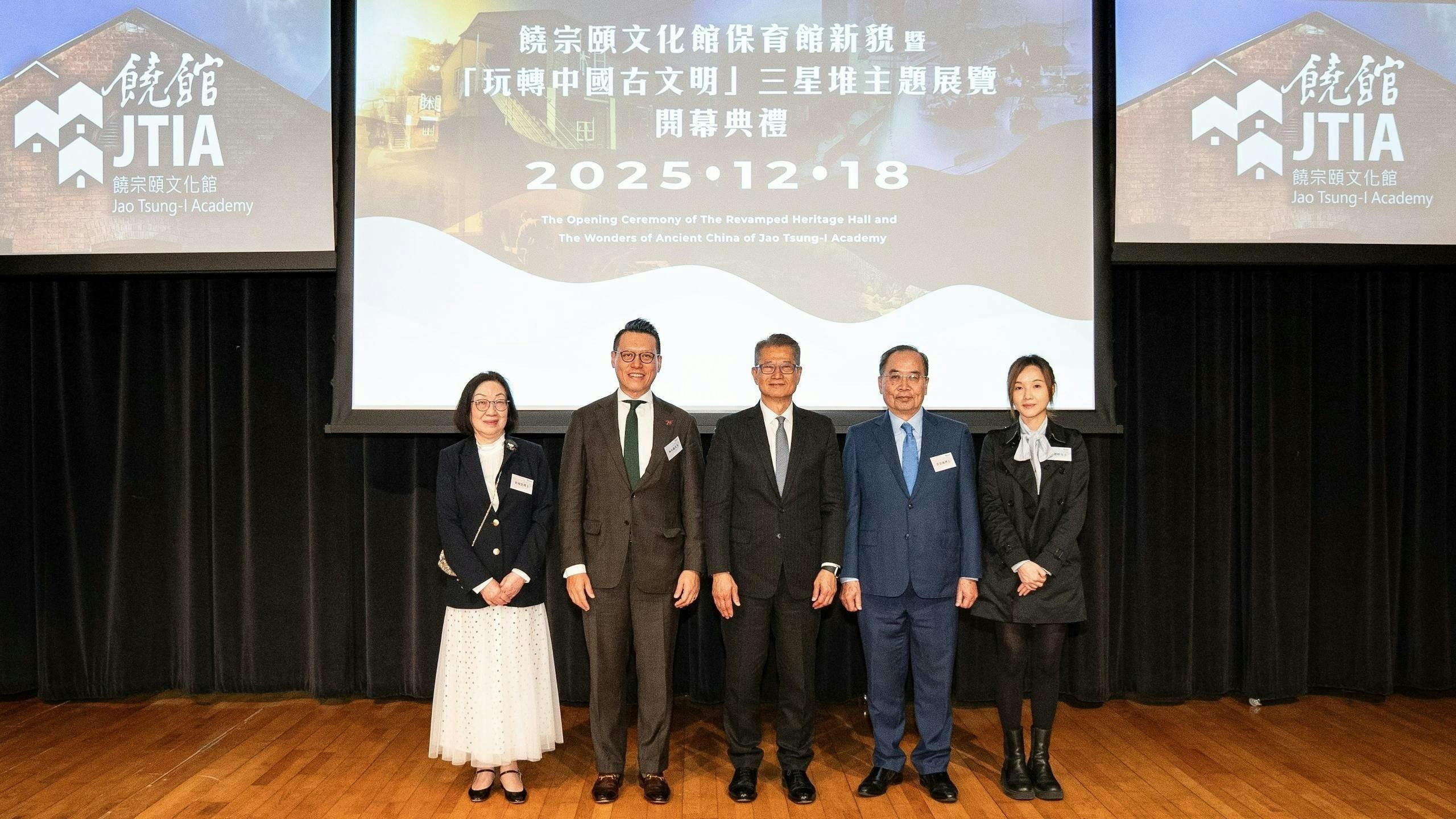 饒宗頤⽂化館保育館完成翻新,增添投影裝置、微型藝術展品、古物真跡與互動體驗區,讓參觀者恍若親歷歷史場景;保育館同場以玩轉中國古⽂明為題舉辦三星堆展覽,為香港再添⽂化新亮點。財政司司長陳茂波出席饒館保育館開幕活動,表示三星堆的發現無疑豐富了中華⽂明,寄望能吸引更多年輕⼈從三星堆主題展覽中感受光輝燦爛的中國⽂化。