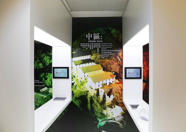 保育館(⼀)的展覽以創意拉近歷史為理念,利⽤聲光互動與多媒體敘事⼿法,串聯起饒館⾃1887年以來的⼋變歷程。從清末九龍關關廠、華⼯屯舍、檢疫站、監獄,到傳染病醫院、荔枝角精神病院、荔康居,並最終活化為香港的⽂化地標——饒宗頤⽂化館,訪客可循着時間線穿越百年歷史,感受香港建築與社會歷史的變遷。