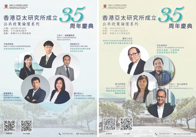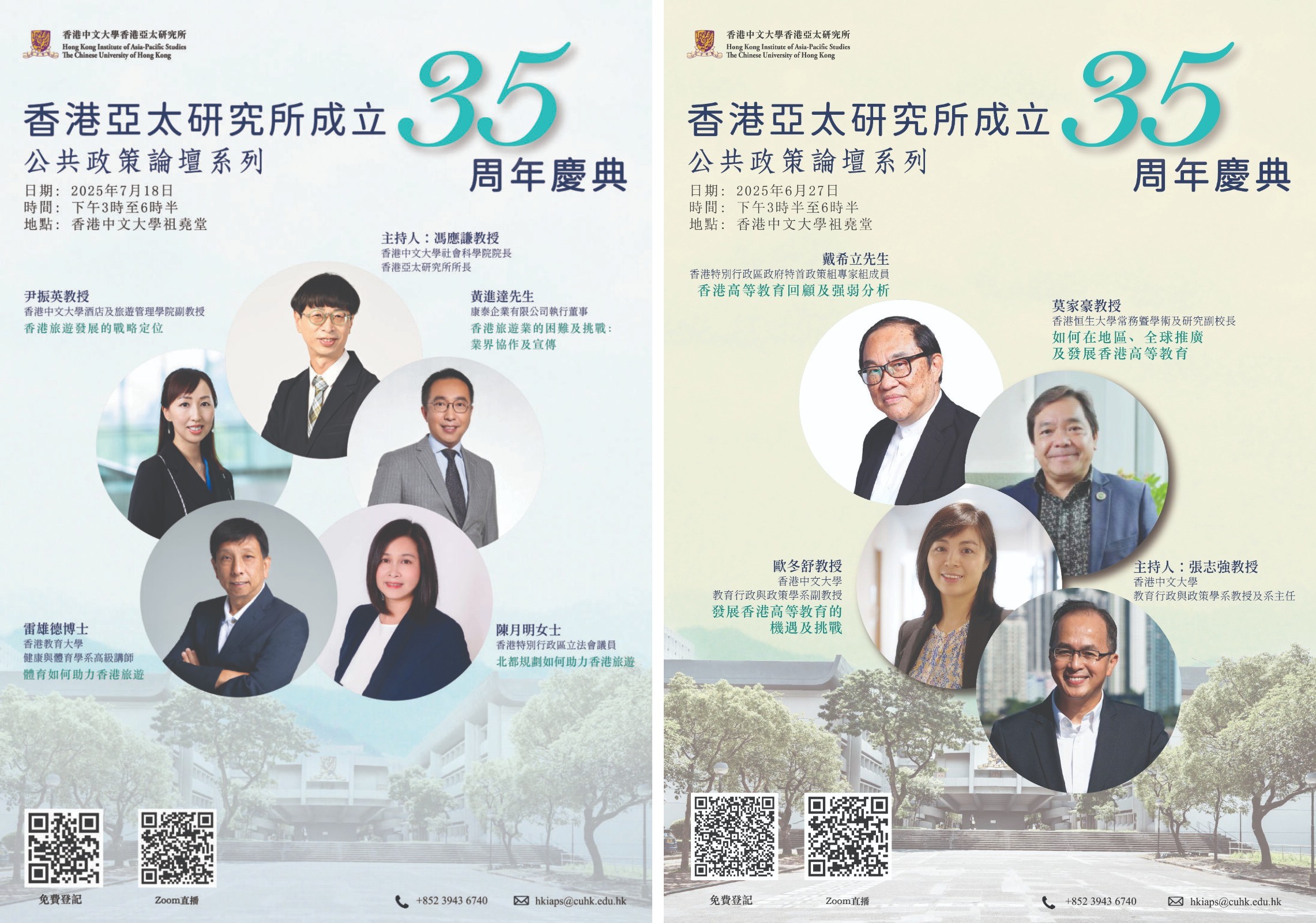 基於此,亞太所決定趁着這個喜慶而不凡的日子,圍繞政治、經濟、教育,以及文體旅四個主題,於2025年5月30日、6月20日、6月27日及7月18日的四個星期五,舉辦一系列公共政策論壇,既為特區政府發展把脈,建言獻策,亦為培訓政治人才出力,砥礪意志,所以把論壇受眾對焦於有志從政、希望改進社會的青年身上,讓他們可透過此系列論壇學習更多政策制訂的多維度思考,開闊政治視角,從而累積政治實力和資本。