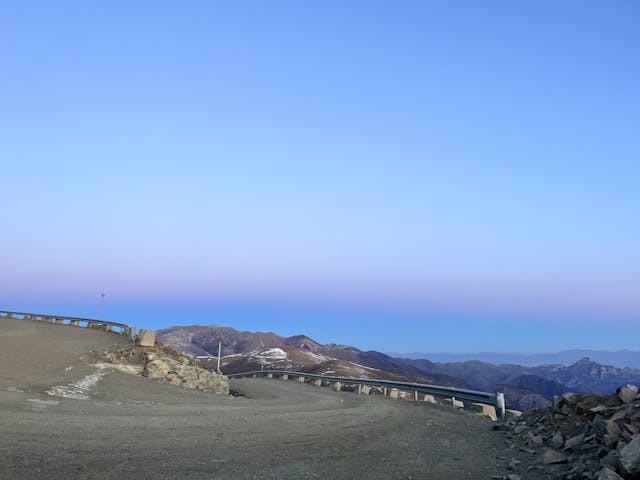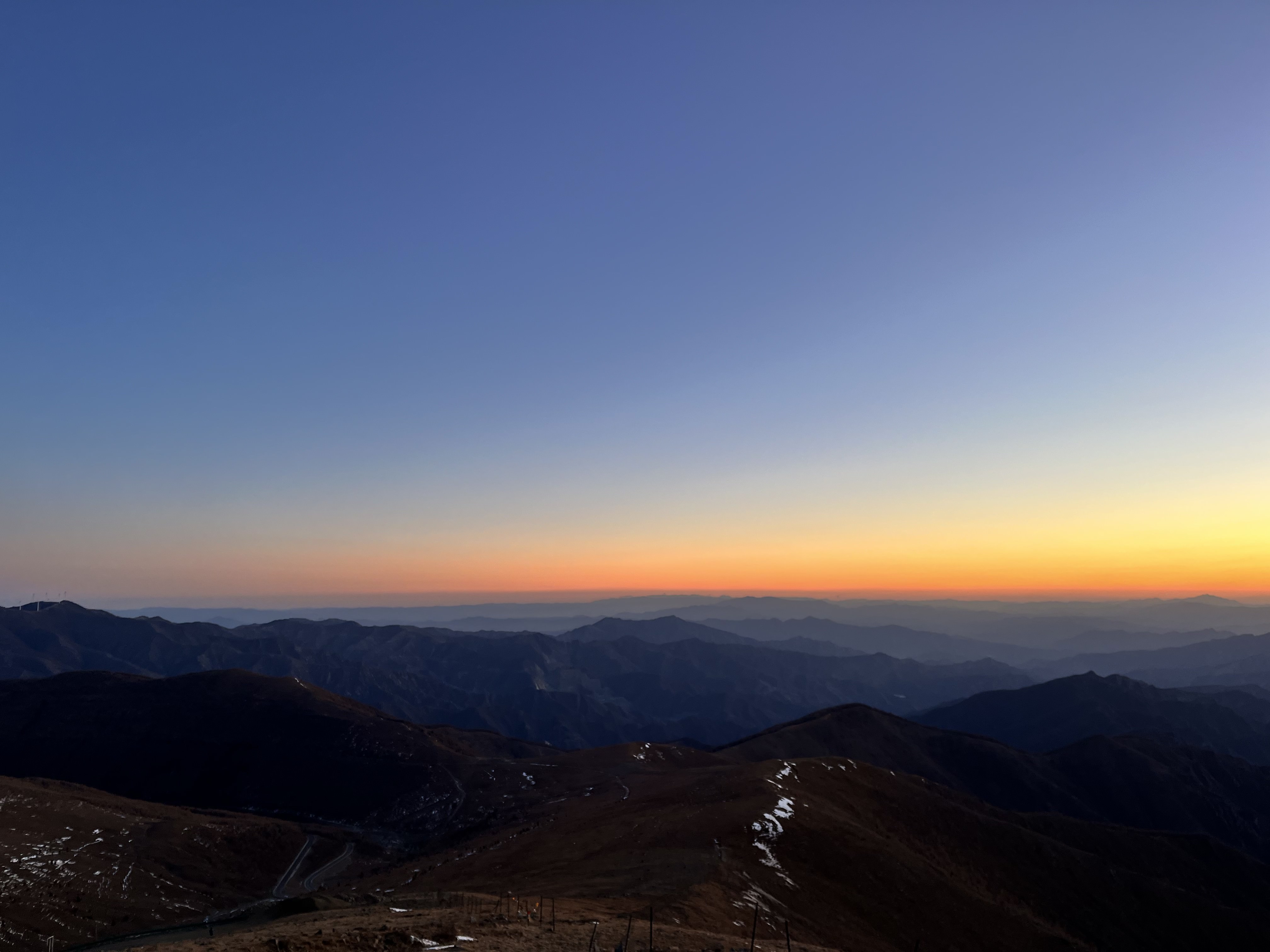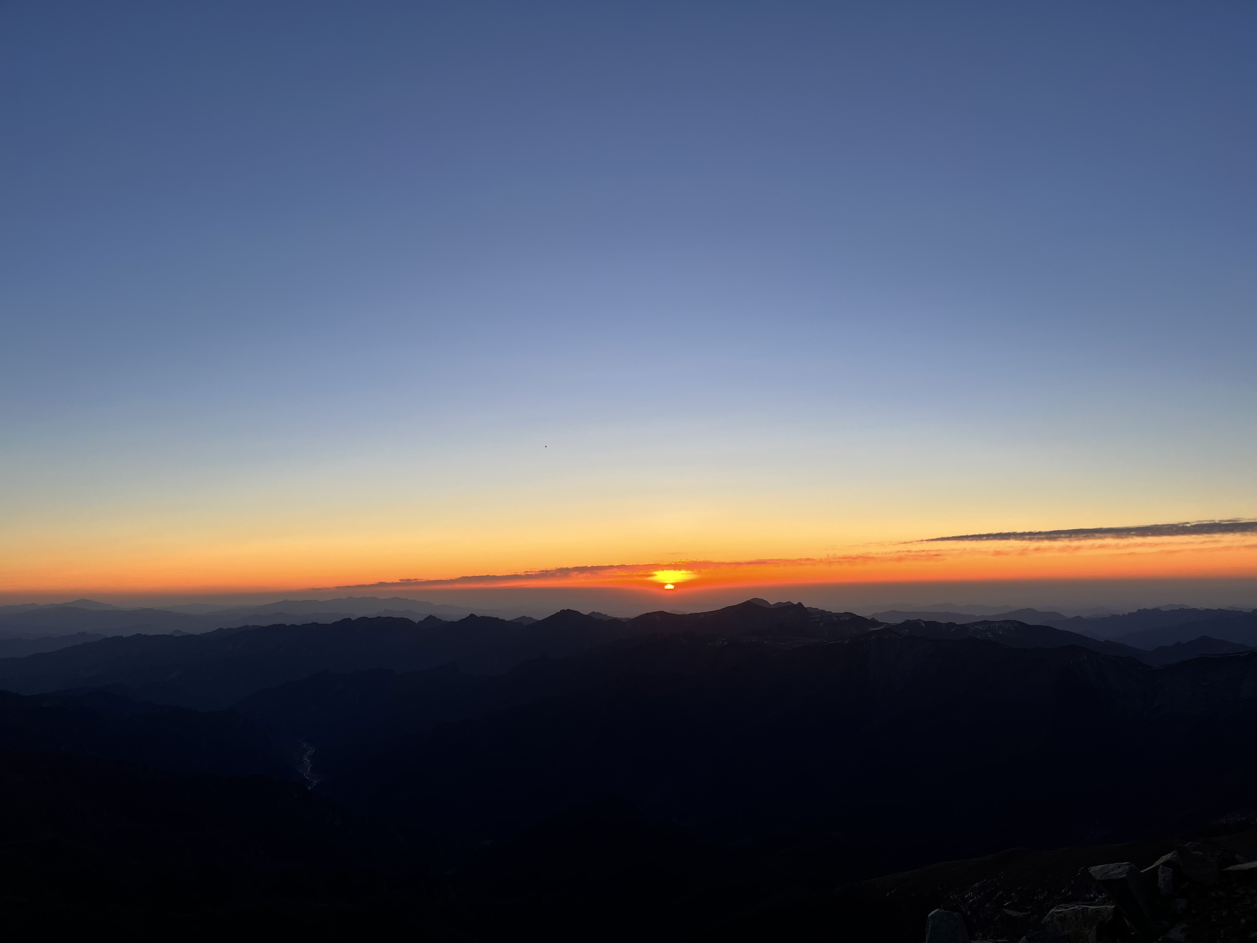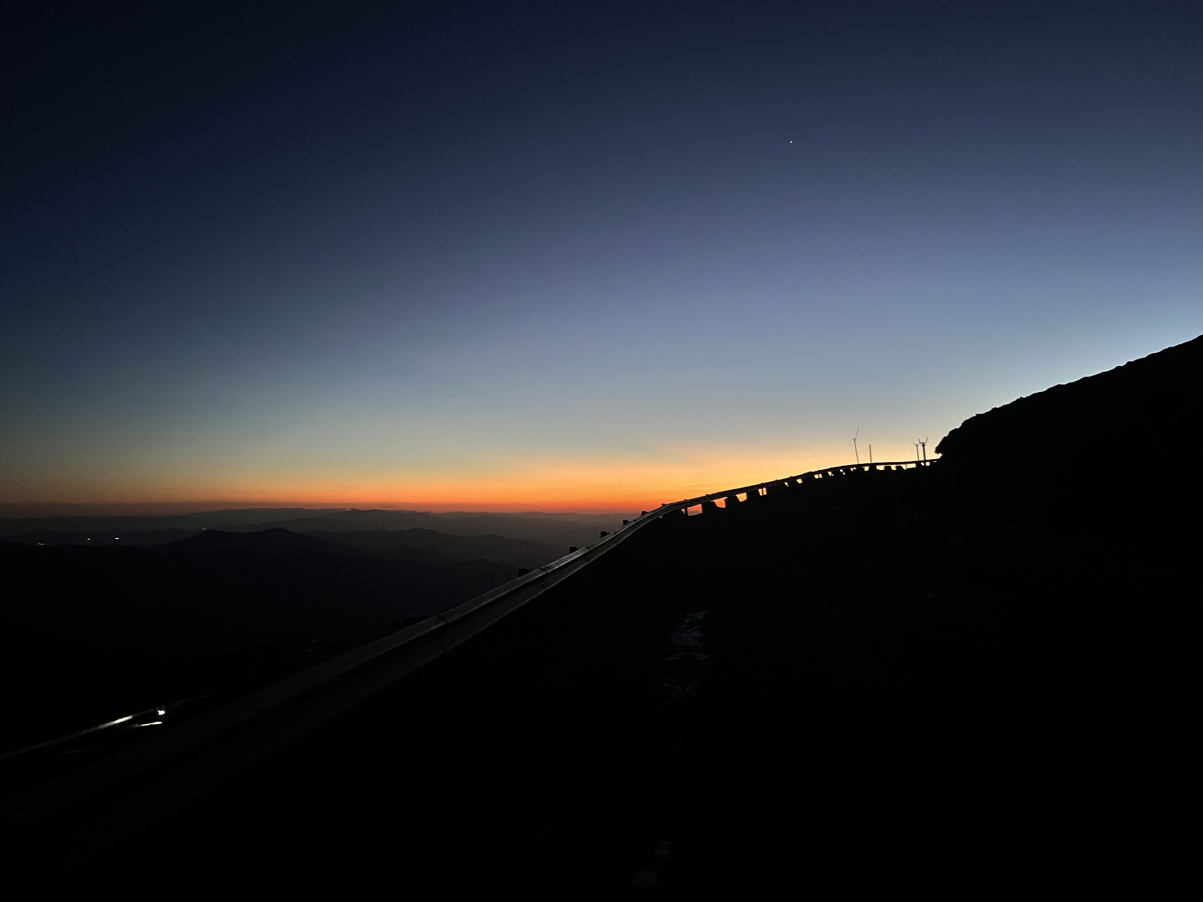 接下來是屏息以待。風依舊在耳邊呼嘯,把我的腳架吹到。我撿了幾塊石頭壓住架子,像護着燭火一樣雙手死死按住。手機裏延時的快門已經在工作,務必要捕捉第一縷金光點燃群山的那瞬輝煌。