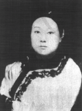 一張溫和的圓圓臉,被刨花水抿得光光的頭髮,常常帶笑的嘴。淡青色湖縐滾寬邊的大袖短襖,沒有領子。