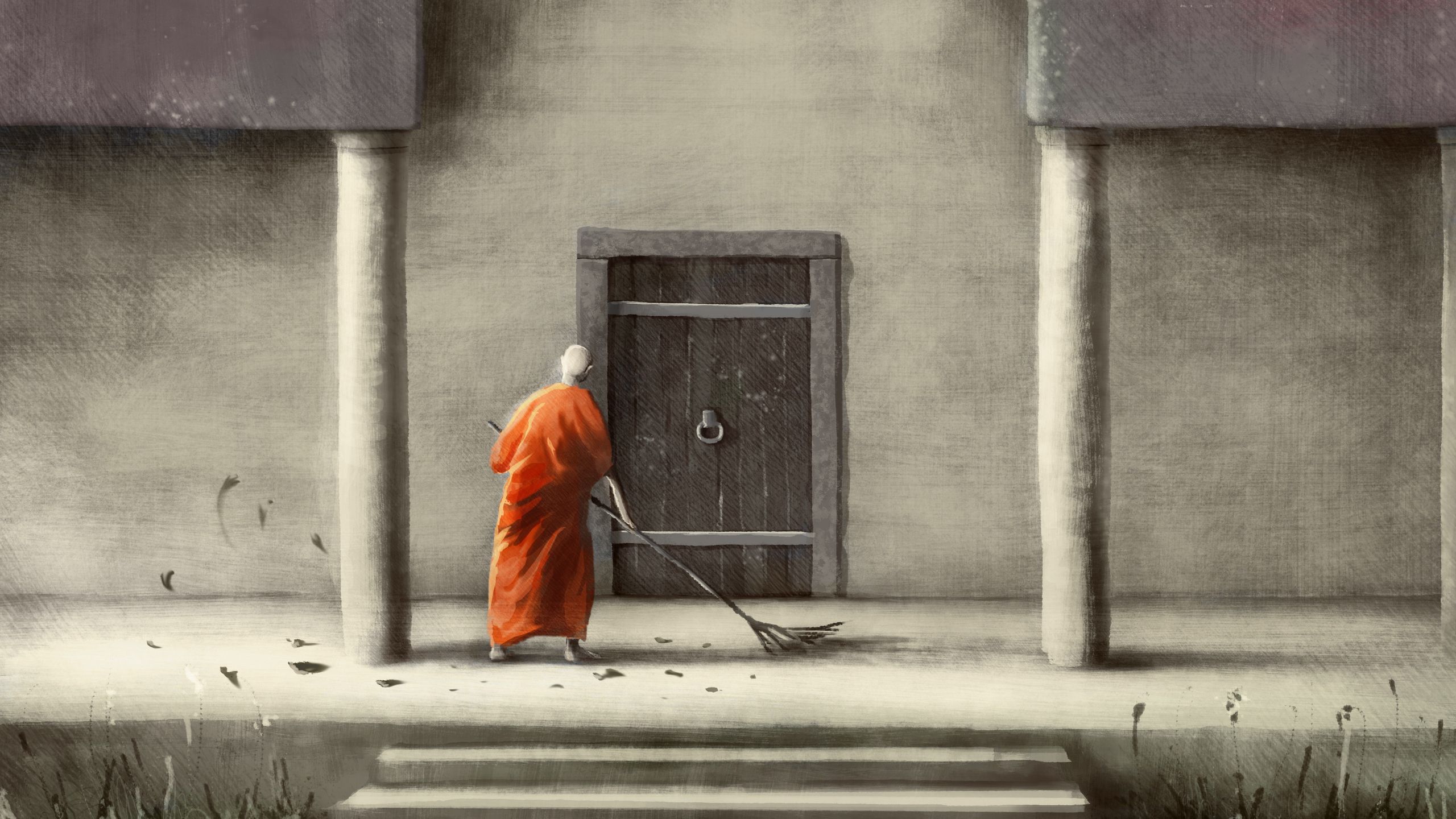 掃地僧說:「葉落便掃,只是掃,不用看方才掃了多少。風來葉散便再掃攏,不須擔心還有多少,這便是無事於心。至於無心於事,是說做事時,莫要存着一個我在裏頭。莫想我在掃地,我掃得乾淨否,我是否辛苦。沒有了這個我字,作事便只是作事,如行雲,如流水,自然而然就是了。」