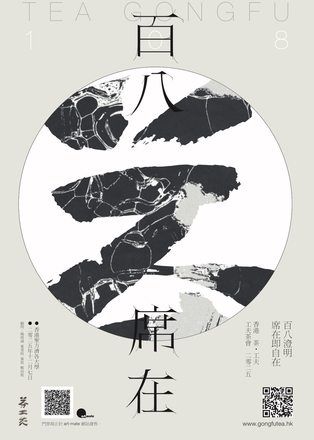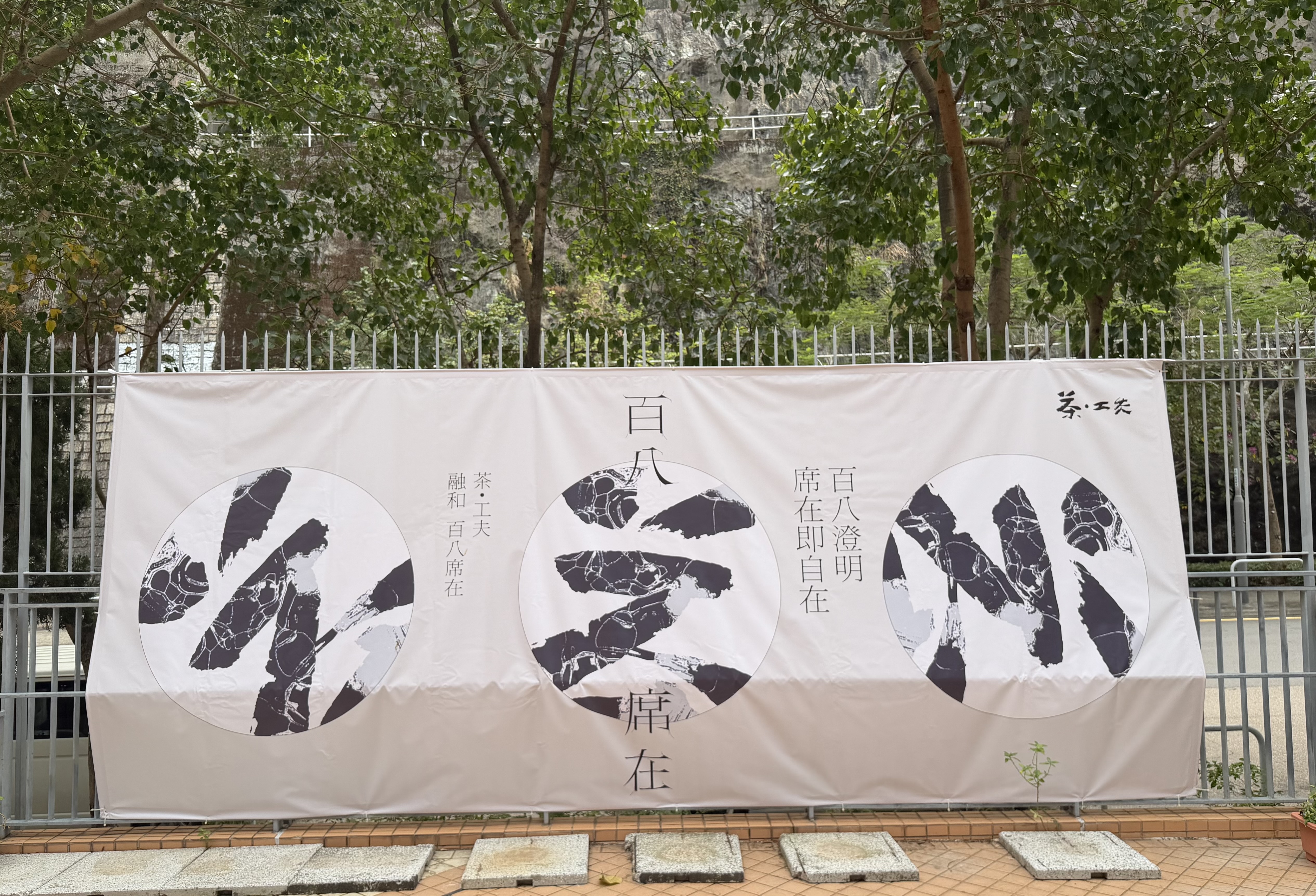 海報上所書的「百八澄明,席在即自在」,象徵茶人透過一絲不苟的沖泡儀軌,去除心中雜念,達到澄澈明淨的境界,寓意在108方茶席中,專注於當下,即能獲得內心的自在和解脫。