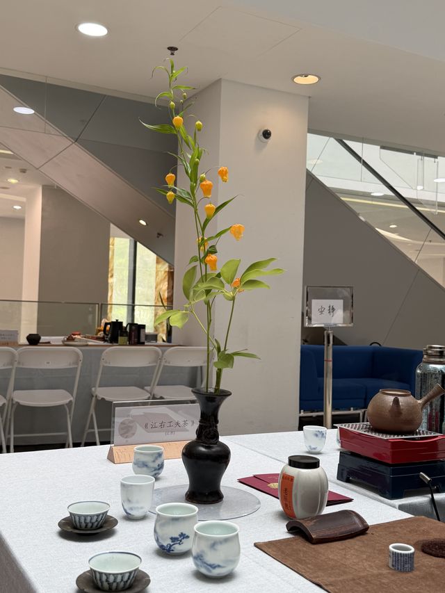 時間溜的飛快,活動已近尾聲,最後結緣的,是湖北「當代功夫茶」茶席,席主周曉玲認為「當代功夫茶不僅是一種技藝,更是一種修身養性的方式,也是一場向內探尋的生命修行。」她不拘泥於固定的流派技法,更注重泡茶時的內心狀態,強調「以茶為鏡,照見自我;以茶為橋,連接他人。」而肖玉慧老師則指出「當代功夫茶立足於『覺、知、行、悟』的四個維度,從而構建當代茶的認知和踐行。」在泡茶的過程中,她動作從容和緩,時光恍惚慢下來……像我這樣的一個品茶人,也會收攝心神,安住當下,就如另一位席主程紅林所言:「在喧囂的都市中,總有一些空間能讓人沉靜下來,品味時光。」