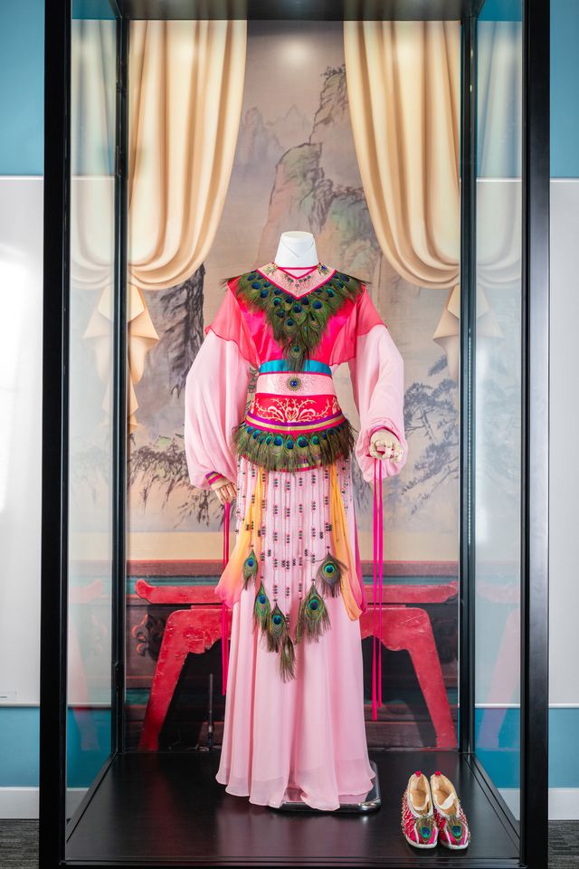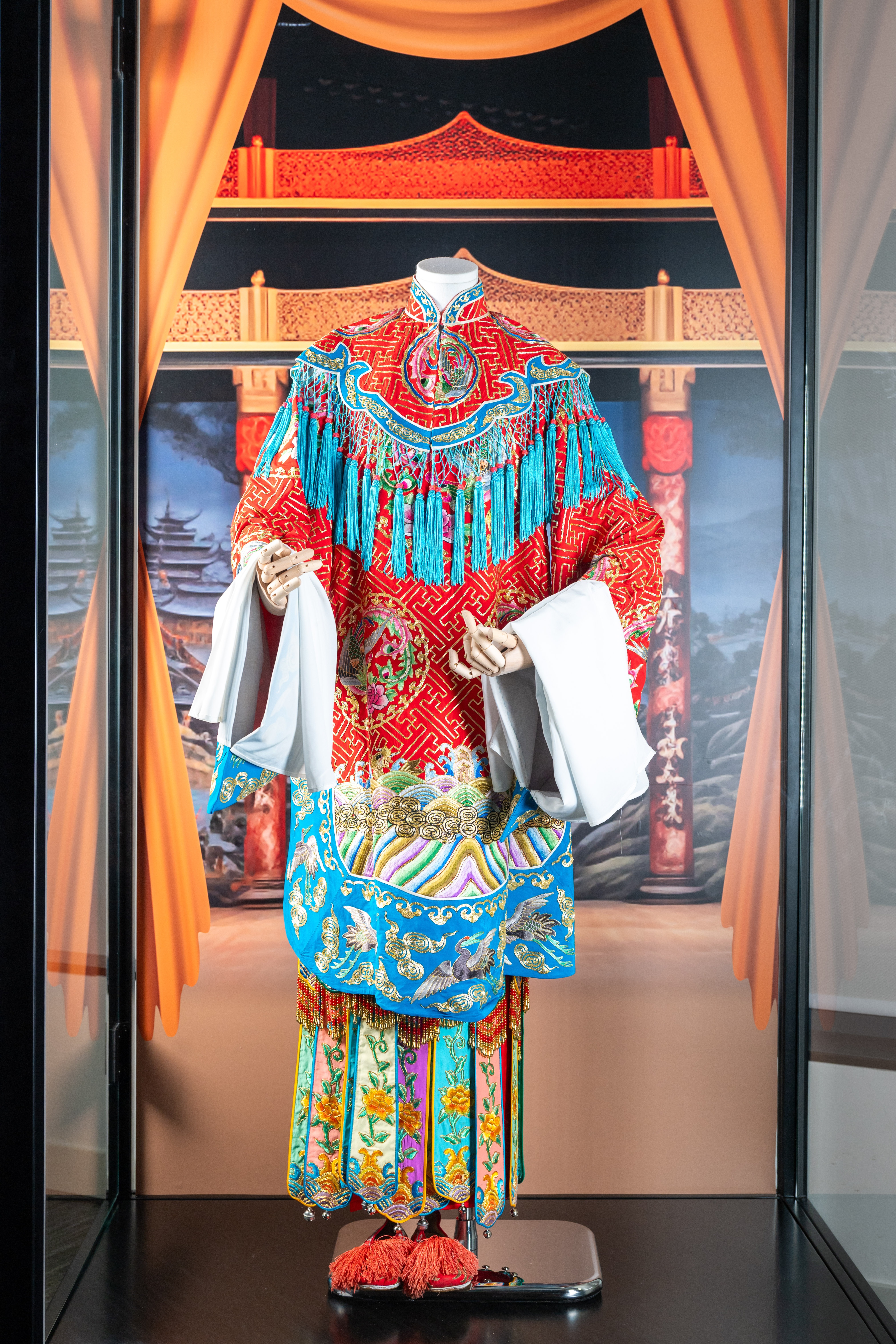 焦點展品包括兩件珍貴「女蟒」(后妃於朝會大典穿着的官禮服),分別是有「花旦王」美譽的名伶芳艷芬博士於1994年夥拍李曾超群博士,為香港醫學專科學院作慈善演出折子戲《紅綾配》時所穿着;以及已故「藝術旦后」陳好逑女士於1960至70年代登台演出時所穿用的粉紫地橙金片女蟒,手工精緻。