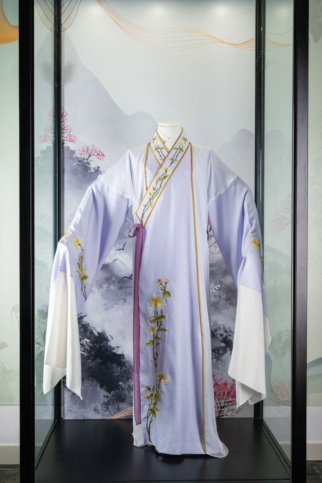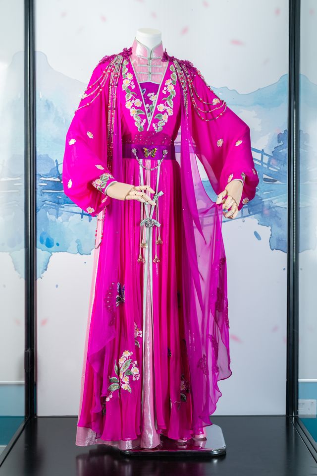 而兩套來自香港粵劇藝術團於2024年上演的「文戲」《蝶影紅梨記》戲服,則展現出與武將戲服截然不同的儒雅與柔美。