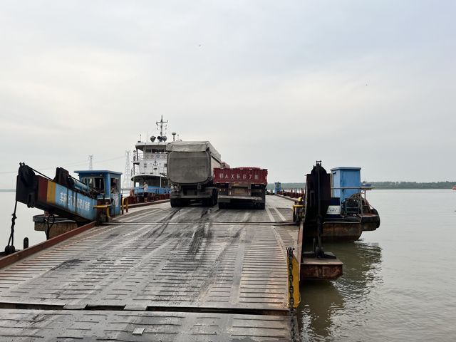 原來,我誤打誤撞闖進的這片秘境,竟然是赤壁汽渡的南岸渡口。每隔一個小時,渡船便在此往返,將車輛連同行人送往對岸。