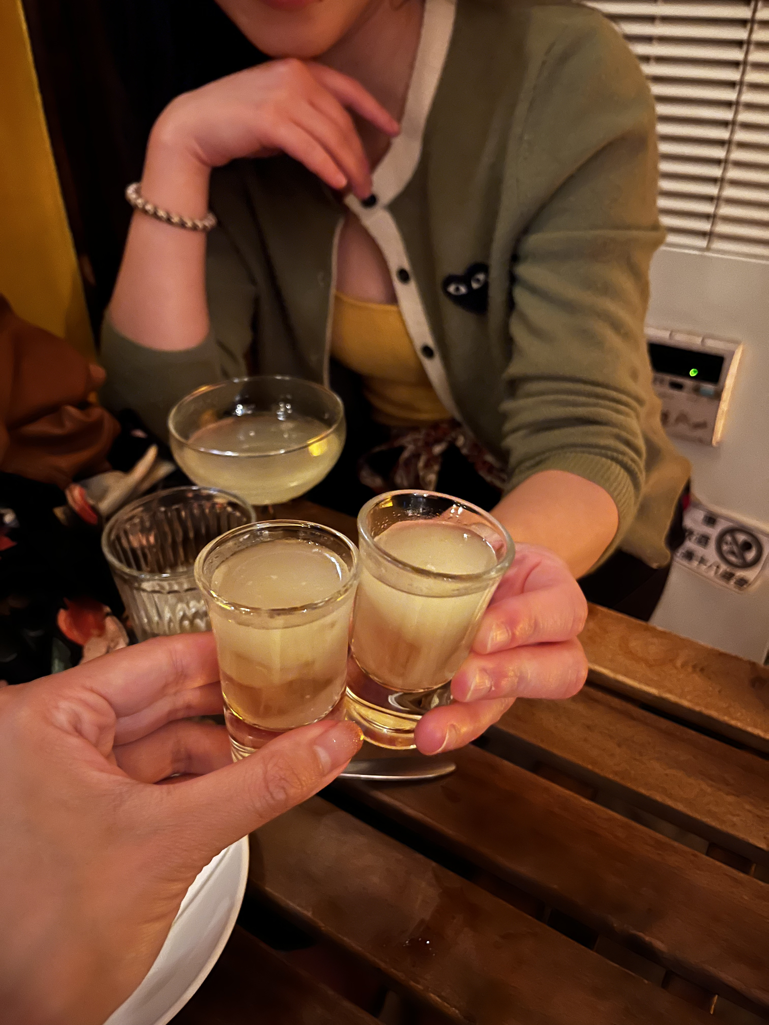 酒保端來兩杯雞尾酒:笑着說「我新調的一款酒,請妳們試試。」原來朋友早就是這裏的常客,與大家打成一片。