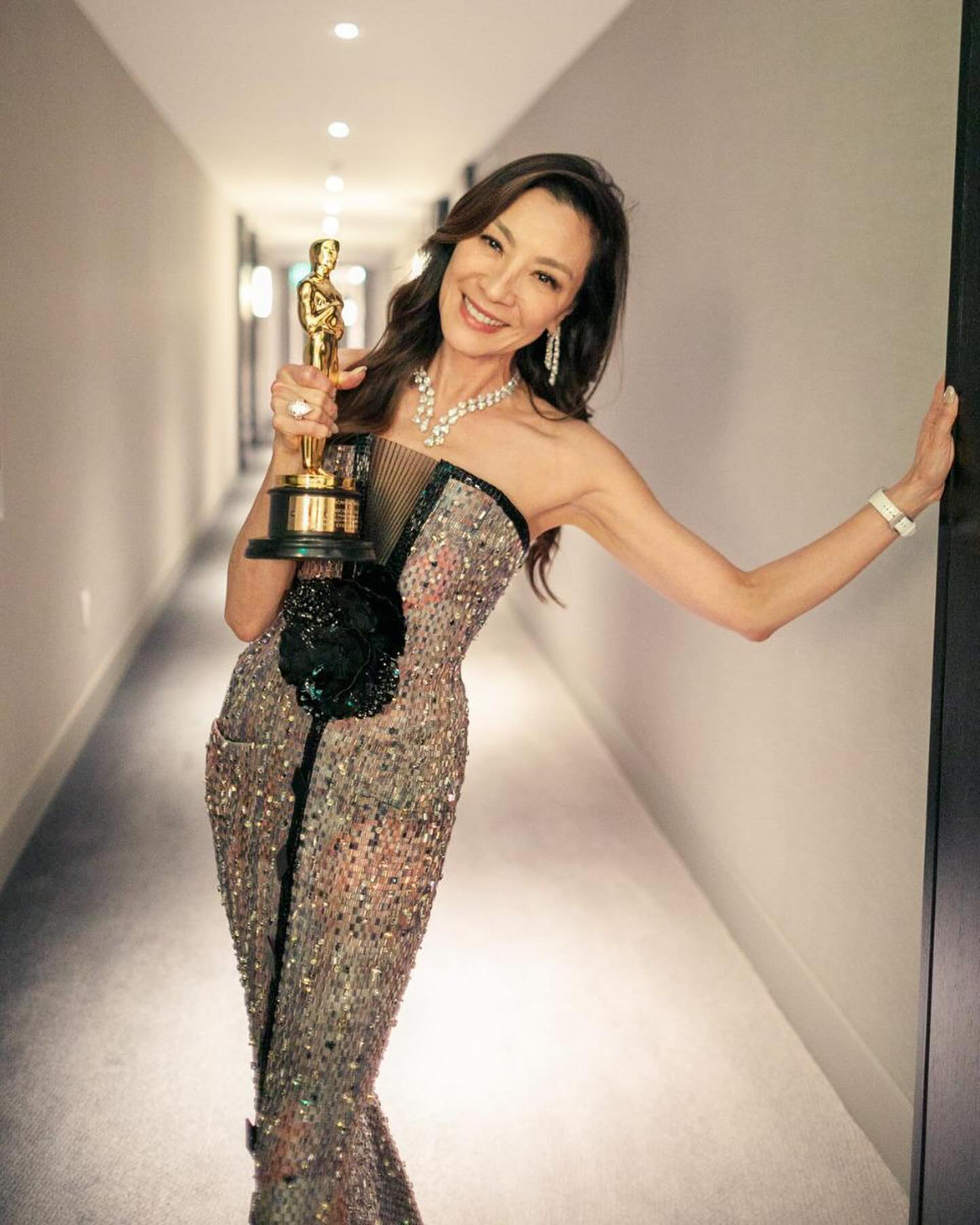 2023年,她憑藉《奇異女俠玩救宇宙》榮膺第95屆奧斯卡最佳女主角,成為史上首位亞裔及華人奧斯卡影后,在近百年的頒獎史上寫下里程碑。在領獎台上,她對着鏡頭說,這個獎是獻給所有「長得像她的男孩女孩」,是一盞代表希望與可能的明燈;她更勉勵所有女性「不要讓任何人告訴你,你的巔峰已過」,將個人成就昇華為跨越世代與性別的集體宣言。她同時特別感謝讓其事業起飛的香港,稱這裏是她得以站上世界舞台的重要起點。