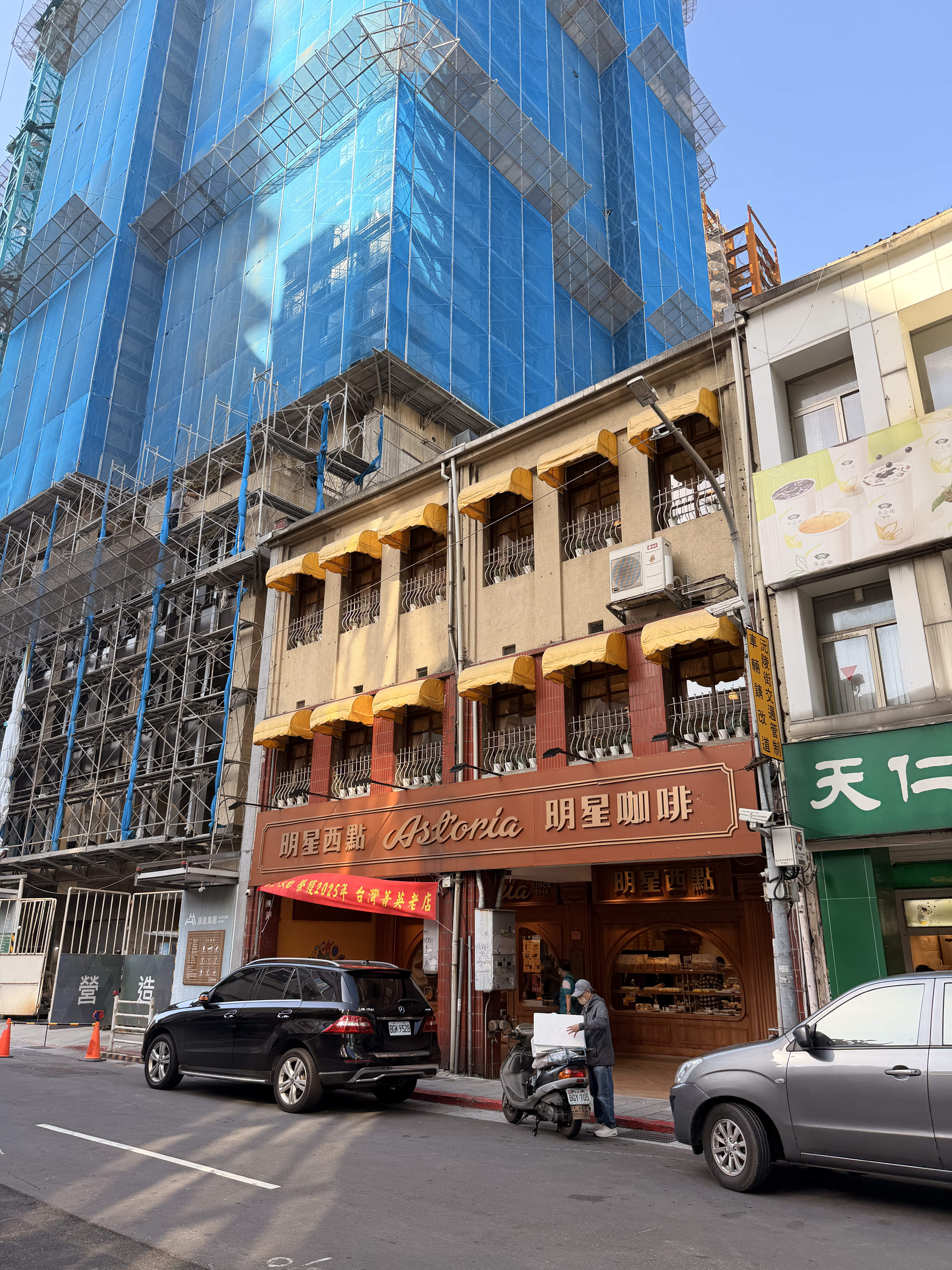 抬頭望去,老洋樓的立面仍留着當年貿易港口的痕跡:拱窗、浮雕,灰白色的外牆,安安靜靜站在熙來攘往之上。我穿過一波又一波人潮,在嘈雜中拐進不遠處的明星咖啡館(Astoria)。這家充滿俄式風情的咖啡館,牆上掛滿了泛黃的黑白照片,框起來的是幾十年前的台北。這裏曾是林懷民、白先勇、三毛等文化巨擘流連之地。念着這些名字,倍感親切,他們陪伴着我成長的青春期。想像白先勇或許曾在這張桌子上構思《臺北人》,三毛曾在那個角落大笑,我不禁神遊,這裏的每一杯咖啡,似乎都攪拌着文學的靈感。