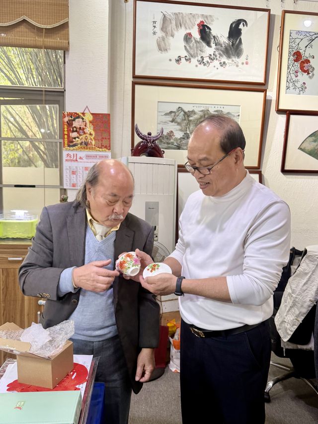 行程從位於曉港公園的趙蘭桂堂開始。劉致遠會長與兄長劉致明、劉致祥一行受到趙蘭桂堂第四代傳人、廣東省工藝美術大師趙藝明及其夫人馮瑞華的熱情接待。作為廣彩世家,趙藝明夫婦帶領香港來賓參觀了堂內的工作坊與珍藏作品,並詳細講述了趙蘭桂堂自1863年創立以來的百年傳承脈絡,以及其在廣彩技藝保護與教育推廣方面所做的努力。