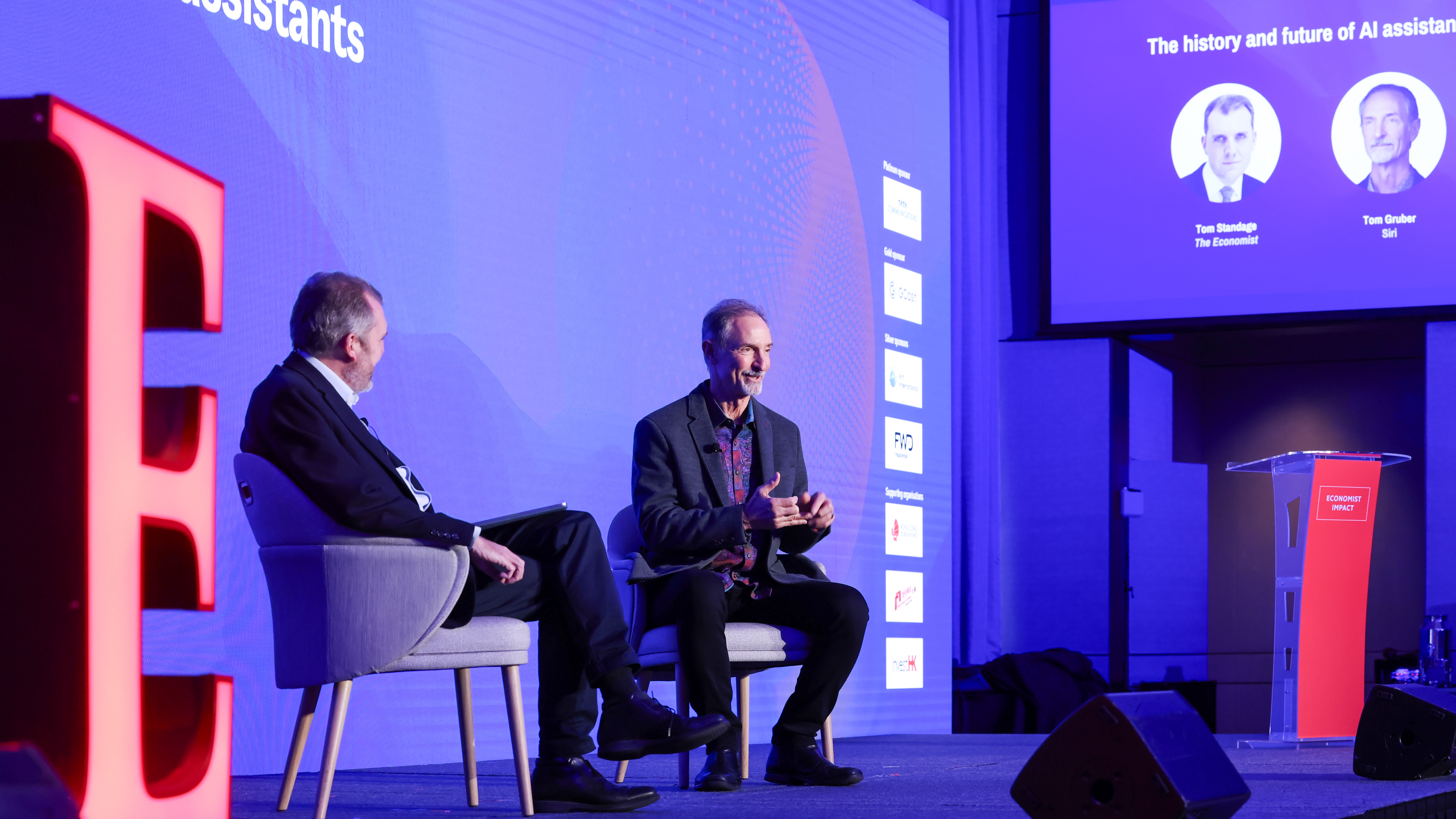 這場由經濟學人影響力(Economist Impact)主辦的頂級盛會,特設了一場發人深省的爐邊對話,探索人工智能助理的歷史與未來。對談由《經濟學人》副主編湯姆.斯坦迪奇(Tom Standage)主持,邀請Siri聯合創辦人湯姆.格魯伯(Tom Gruber)分析對話式界面(conversational interfaces)如何重塑甚至潛在威脅現代勞動力與整個社會。