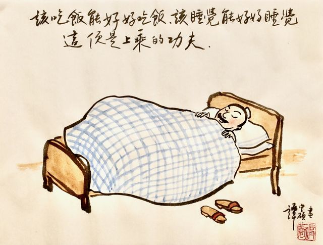 我去探望,他笑着説:「現在好了,終於能放下洞簫,不吹奏了。」