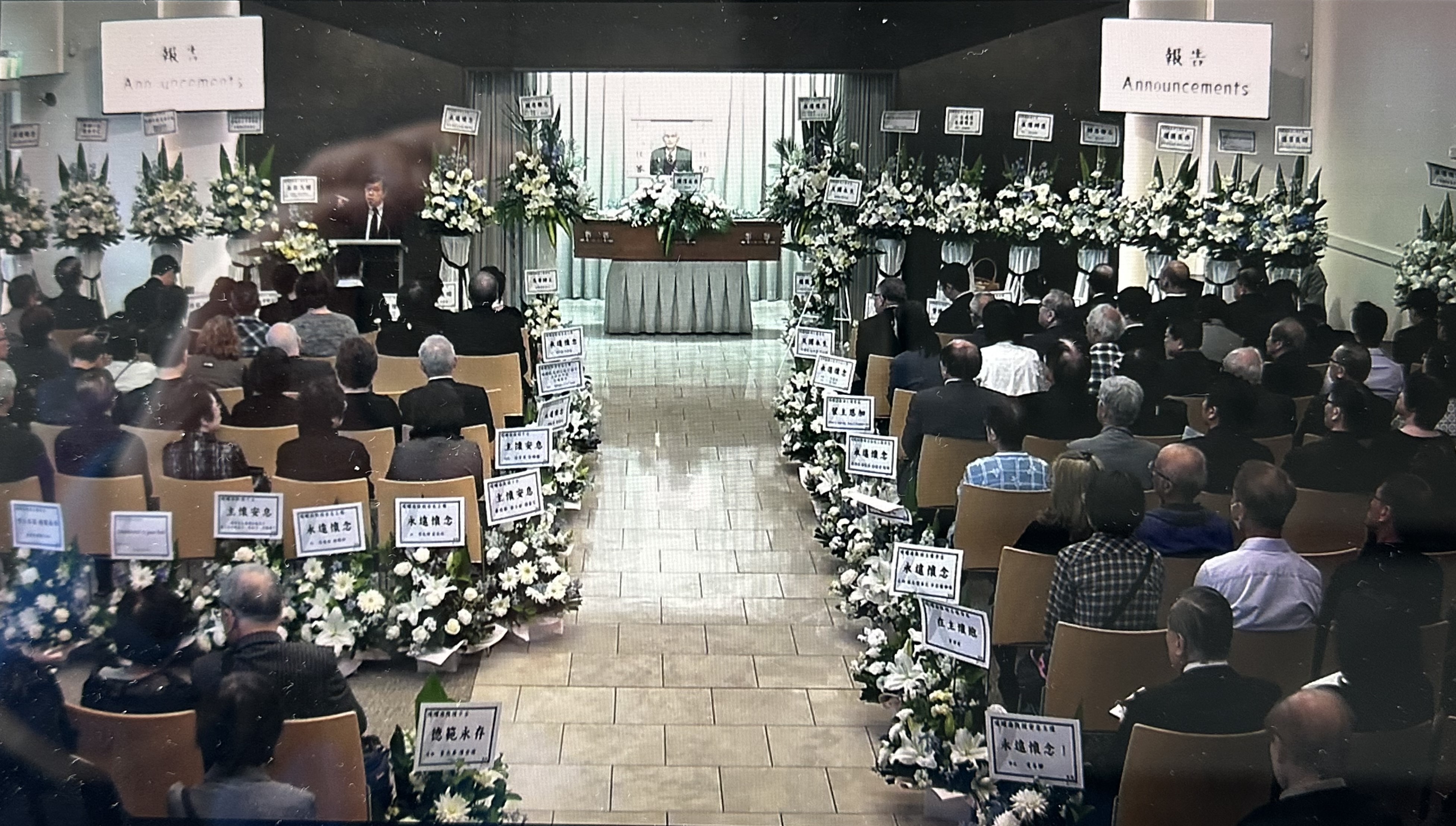 陳耀南教授的澳洲追思會上,播出了多年前已成香港樂壇歌神的學生許冠傑致意結他演唱《真的愛你》。(曾智華Facebook)
