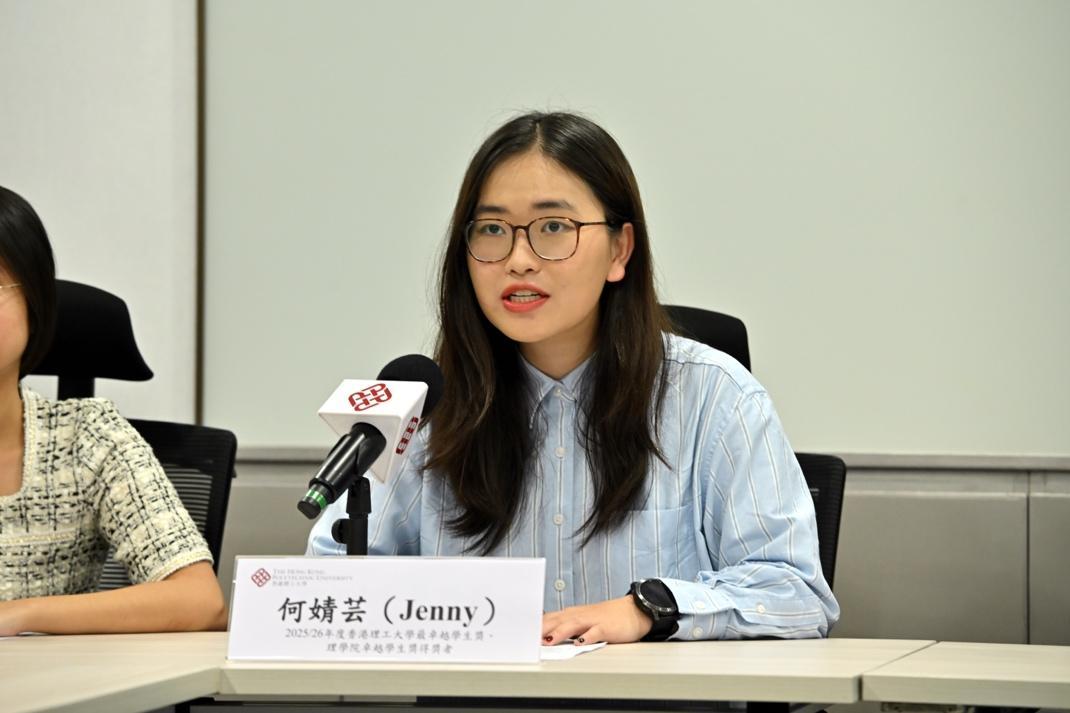 榮獲本年度「香港理工大學最卓越學生獎」及「學院卓越學生獎」的是來自貴州的何婧芸,她是理學院四年級學生,主修應用生物兼生物科技。