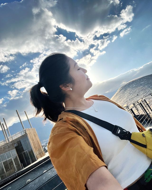 大理的文化從不只是古建與民俗,當代藝術與多元生活在此交匯。舞蹈家楊麗萍便是白族文化的代表之一。她以《孔雀》、《雀之靈》等舞作享譽國際,將民族之美揉入現代舞語。黃昏時,我走進楊麗萍大劇院。那極具辨識度的建築,屋頂起伏似蒼山,線條柔和卻又有力量,靜靜坐落於山海之間。