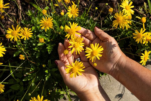 她把往前跑的我拉下,抓起我的食指點了點她的黃制服,「情人菊就是這個顏色。」
