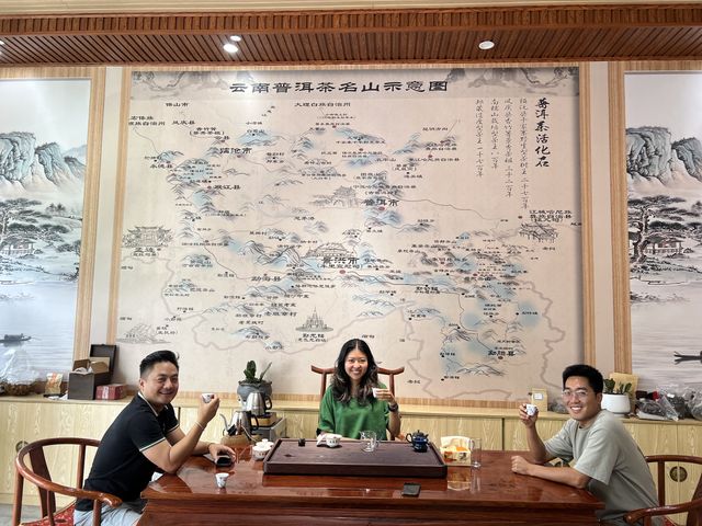 在勐海,我認識了詠春茶廠的一家人──二哥、朗秋和李紅。他們在2020年建立了標準化的加工廠,不斷鑽研茶學,也四處與茶農交流、參加比賽與評比。他們在茶室牆上掛着一幅雲南普洱茶名山圖,看着地圖,我對那些還不熟悉的寨名充滿好奇。雖然它們現在只是紙上的一個點,但我渴望在未來的日子裏,能慢慢走進每一個山頭,去了解它們的特點。