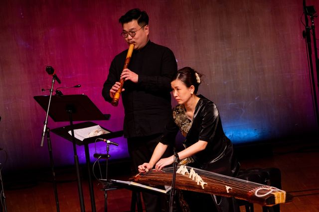 值得稱許的是,幾乎所有作品都不打算以朗然琅然的口水旋律、明快動人的舞曲節奏來奪走聽眾的注意力,而是在綿延不斷的音符交替與協奏中讓大家去觸摸這些樂器的音質,以及它們當下的象徵意義,如尺八的空靈嗚咽(楊光、沈健瑜演奏)、日本箏的芊綿細密(野口琴美演奏)固不待言,再如單簧管的溫潤親切(梁榐麟演奏)、大提琴的執拗恣肆(葉俊禧演奏)、胡琴的深情縱橫(周翊演奏)、琵琶的嘈嘈切切(彭偉倫演奏)、笙的澄澈明淨(黃嘉泰演奏)⋯⋯這正可謂渾沌未鑿的璞玉之美。尺八、笙與單簧管,日本箏與琵琶,大提琴與二胡,三三兩兩間的對話,也甚堪玩味。