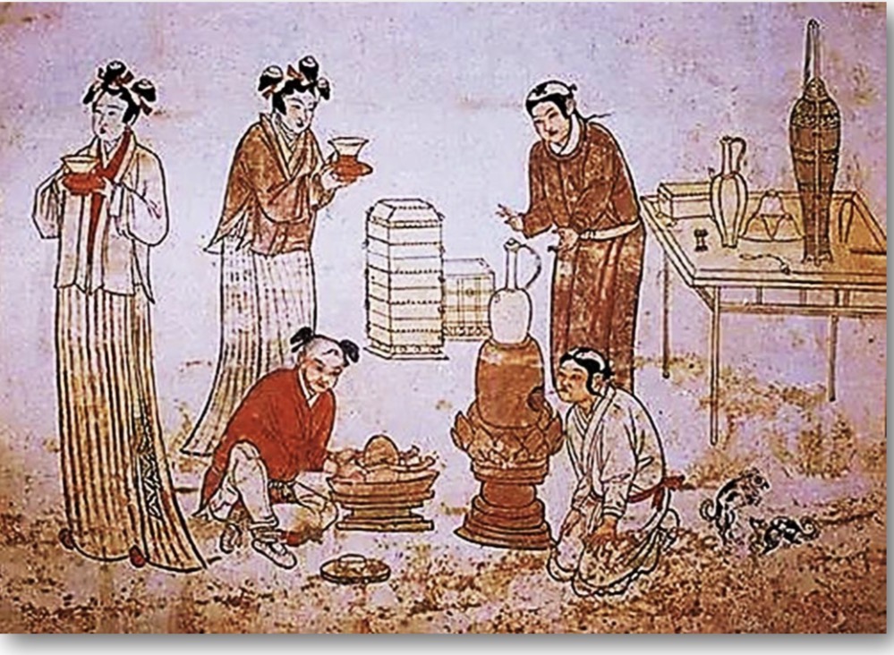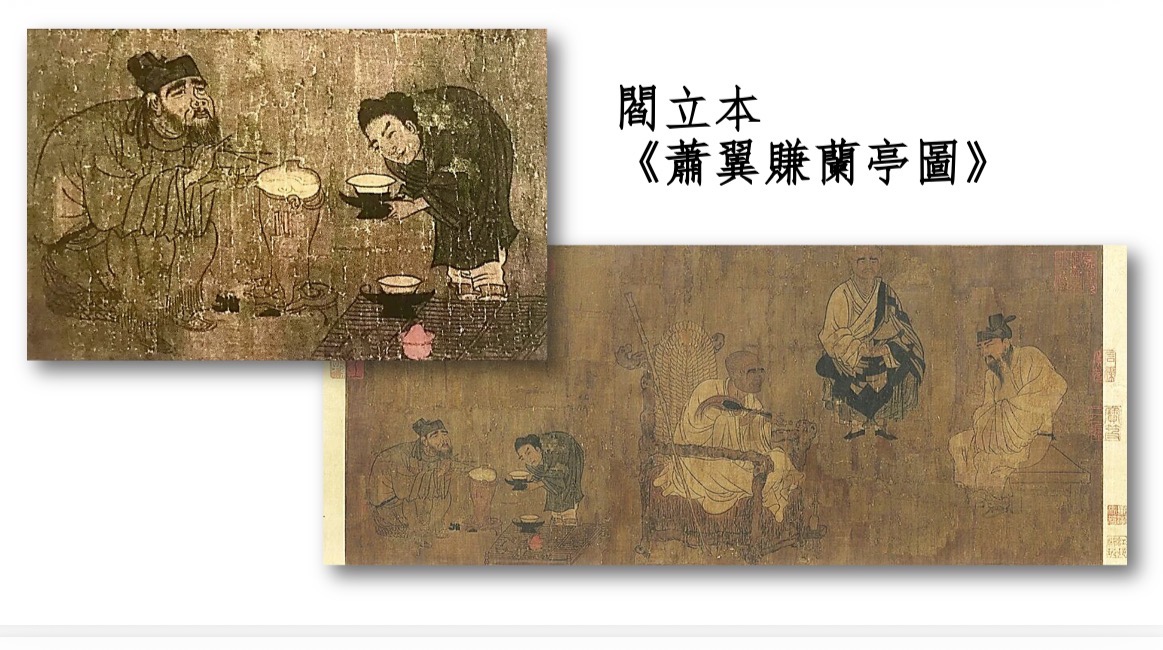 唐閻立本《蕭翼賺蘭亭圖》,畫的是蕭翼向辯才索畫的寫照,旁有二僕在茶爐上備茶,反映了當時真實的生活面貌。