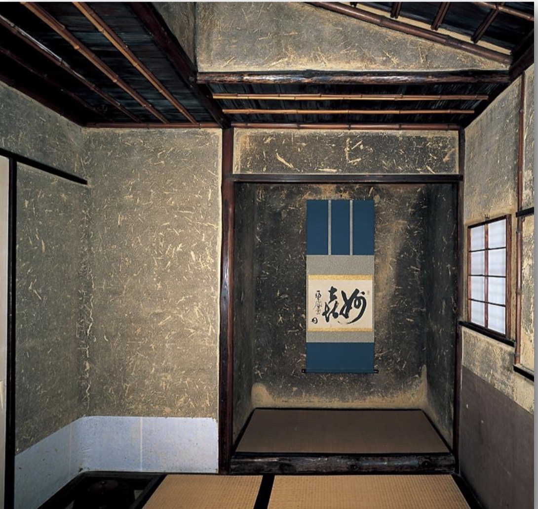 京都妙喜庵內保存了千利休設計的「待庵」,是最小的茶室,被指定為國寶,可預訂並支付入場費參觀。茶室為懸山頂建築,搭配柿葺屋頂,大小為兩帖榻榻米,同時也設立了「躙口」,縮小客人進出用的門。茶室與另一建築相連的北側設有床之間,上面懸掛一幅字畫「妙喜」,掛畫之風,可追溯至《茶經》的「十之圖」。
