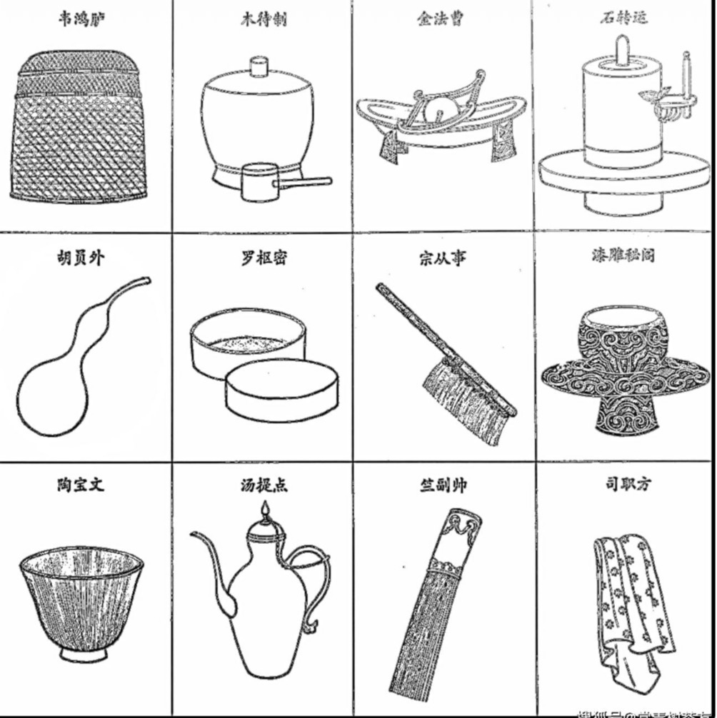 徽宗還親自設計了一些做茶餅的模,於龍鳳團餅茶銙(茶餅)圖中可見,茶模各有不同。此外,宋審安老人《茶具圖賛》,展現了當時所用的的茶具。