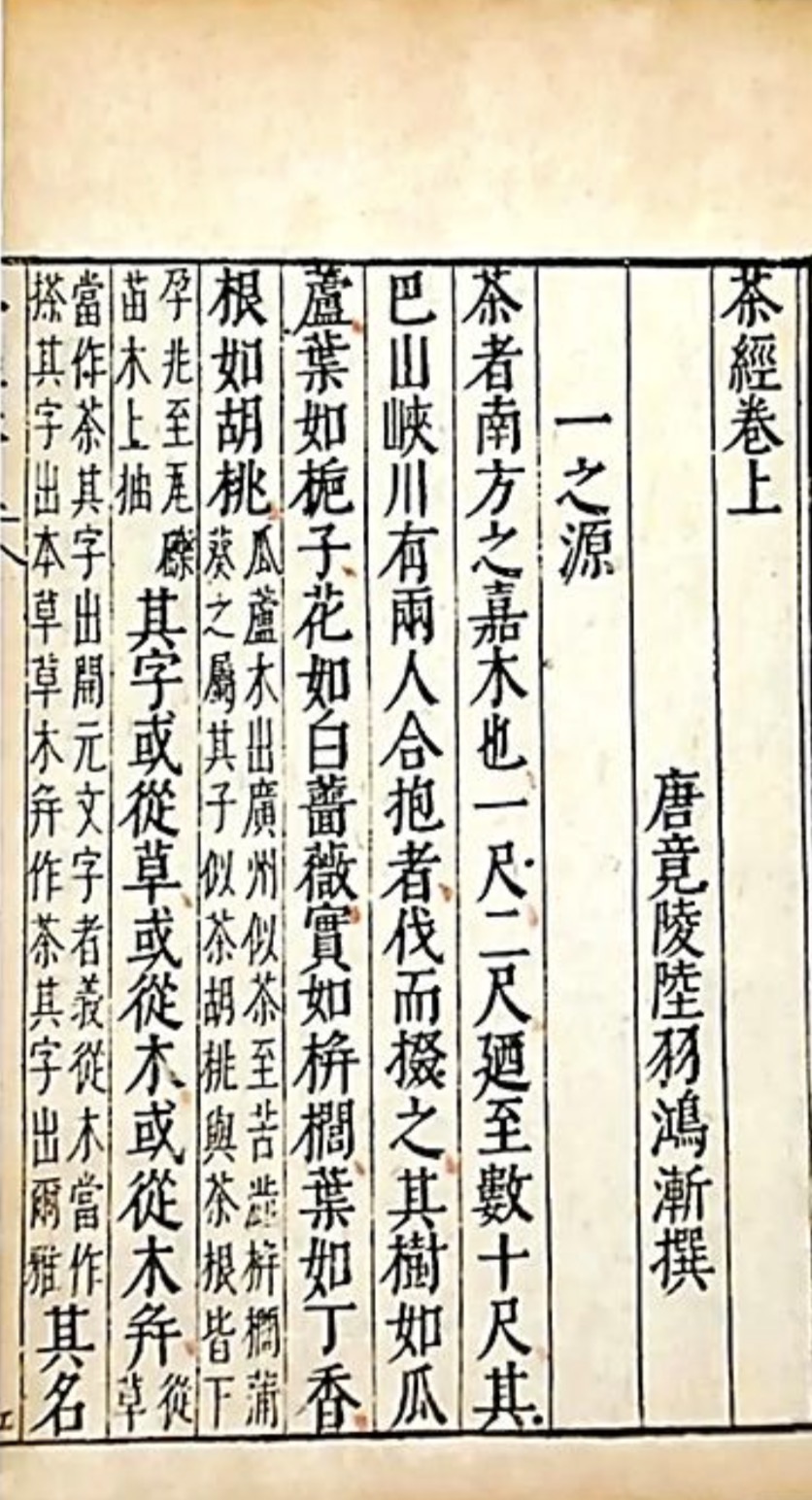 唐代陸羽(733-804年),於安史之亂時,他在湖洲附近,專心寫《茶經》,全書分三卷十節:「一之源、二之具、三之造、四之器、五之煮、六之飲、七之事、八之出、九之略、十之圖」,此書從茶的起源到茶之器具,再到茶的製作,茶飲之事等,一一詳盡總結,是當時茶學知識的集大成之作。