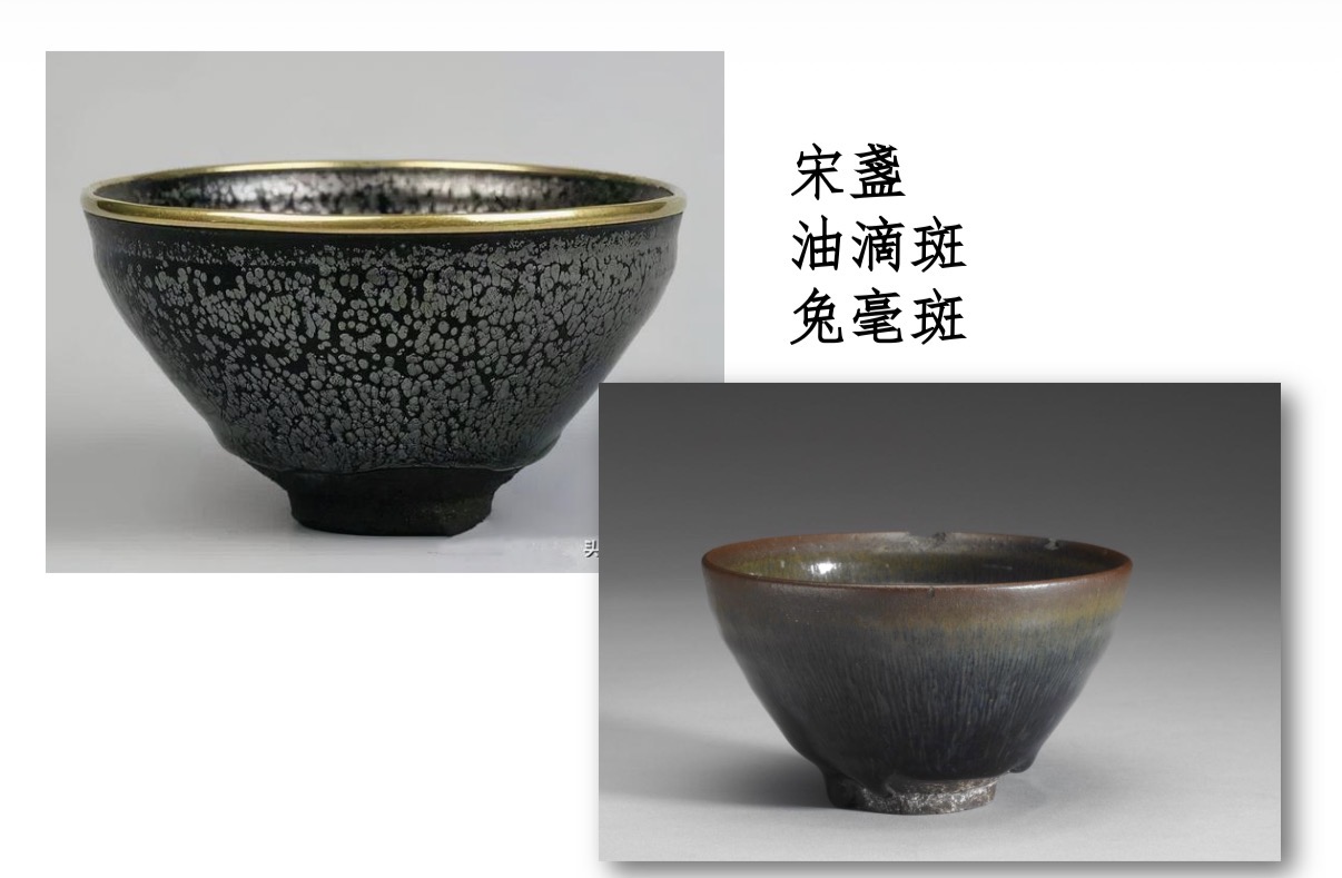 宋之茶具極為考究,《茶錄》論茶盞,言「茶色白,宜黑盞。」如油滴斑、兔毫斑,堪稱極品。