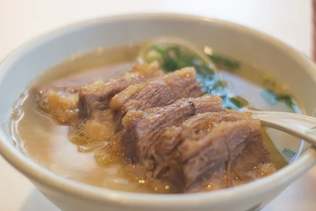 我們上午晚間為避開高峰,有意9點才去維多利亞公園後面的粉麵舖,結果門口還排着長龍,等了近30分鐘才落座。我很喜歡清湯牛坑腩粉,雖說是清湯,實則為牛骨湯,店家每日都要花幾小時煲燉,才令湯色清澈、牛腩酥爛,簡直百年不過一碗湯麵。兩人吃完尚覺不過癮,加多一份西多士。分半食之,外脆內軟,芝士厚得能拔絲,咬一口,人間至味也。
