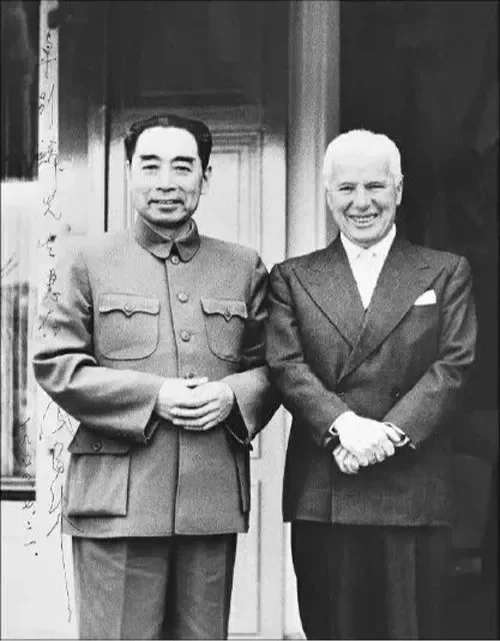 周總理與卓別靈1954年7月18日在瑞士日內瓦會面。卓別靈因拍攝反戰電影遭美國迫害而流亡瑞士。周總理主動邀請他到下榻的花山別墅共進晚餐,並親自在門口迎接,笑說「40年前就在銀幕上認識您了」。席間周總理準備了北京烤鴨和茅台酒。卓別靈幽默地表示因模仿鴨子走路從不吃鴨肉,但「中國的鴨子是例外」。他關注日內瓦會議的進展。周總理告知印度支那問題已和平解決。卓別靈稱讚周總理是「決定和戰的關鍵人物」。