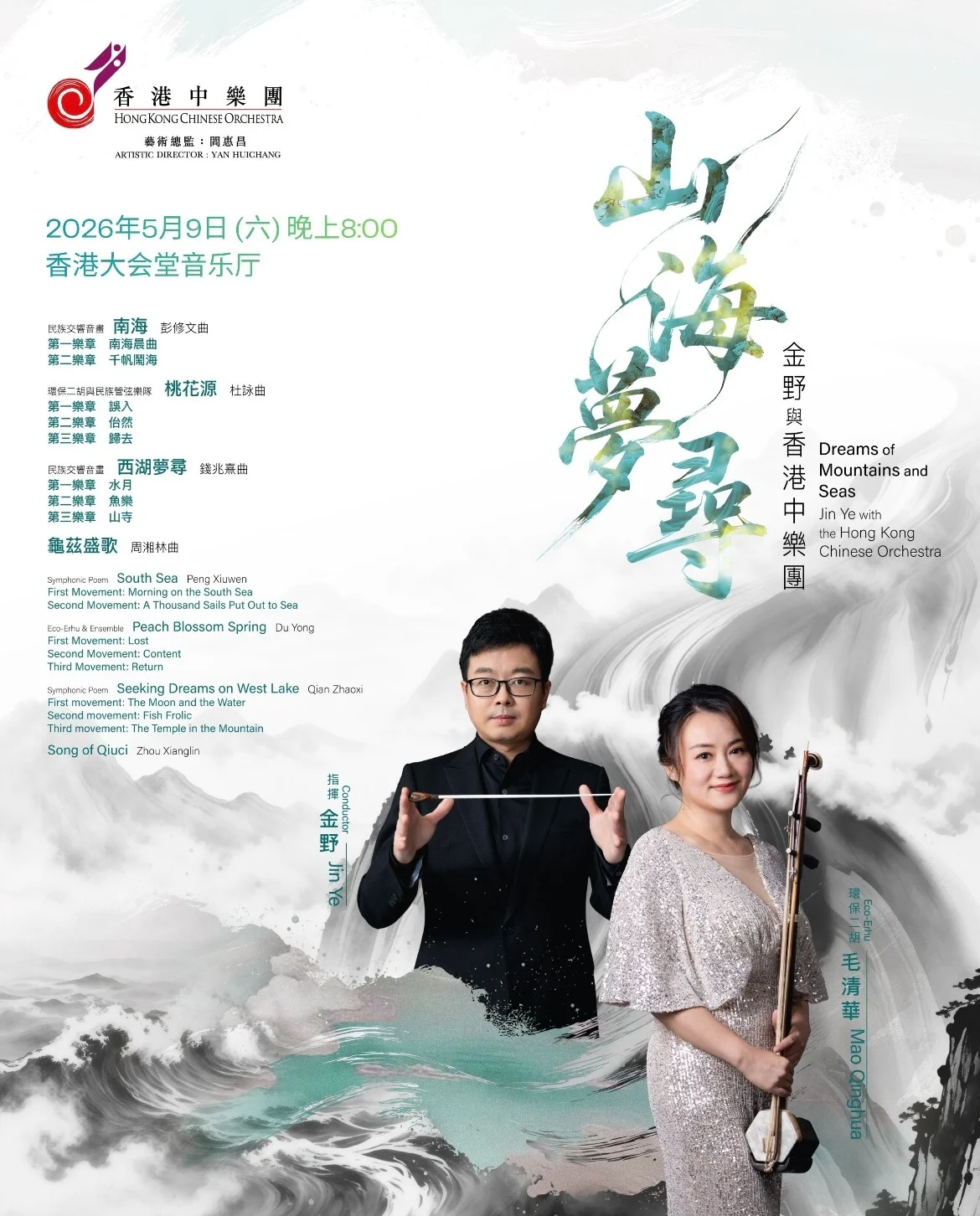 2026年5月9日晚,香港大會堂音樂廳將泛起縷縷琴音,劃破香江夜色,引領聽眾暫別都市喧囂,融入陶淵明筆下「黃髮垂髫,並怡然自樂」的意境。執棒這場「山水音畫」主題音樂會的是中國音樂學院指揮系主任、中國音樂學院交響樂團常任指揮金野教授。這不僅是金野與香港中樂團的首次合作,更是他作為指揮家兼學者,在歷史打撈、當代詮釋與未來探索等一次完美的藝術實踐。