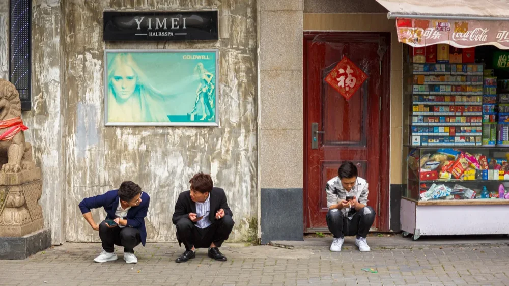 不必提爭先恐後不排隊上車搶座位高聲喧嘩的村姑大媽,無論是人潮洶湧,還是車廂空洞,總有幾個功夫高強的男女老幼,雙腳展張、臀部一坐、貼在腳踝、穩穩當當,自帶空氣櫈,蹲在車廂地上,旁若無人開始滑抖音,像是時刻提醒我,回到內地了。