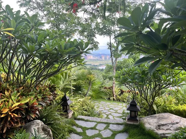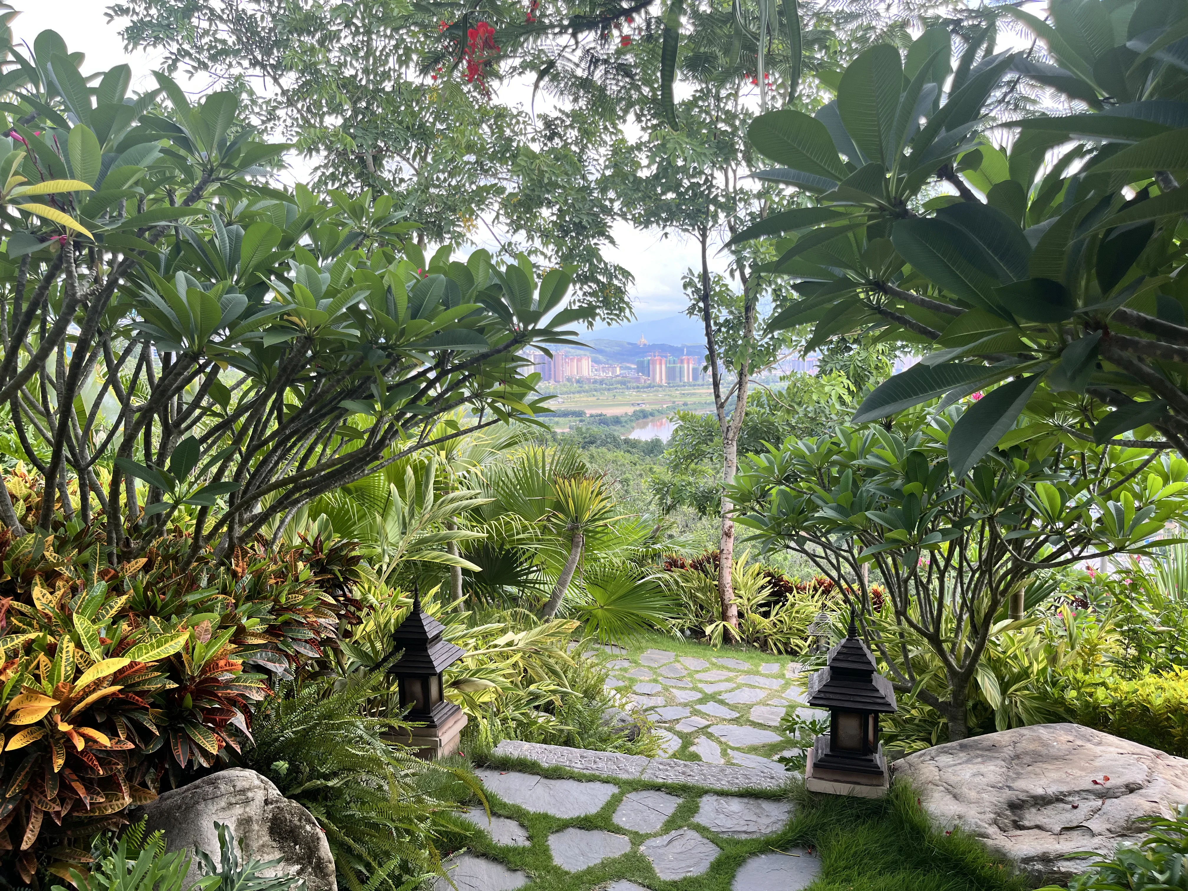 在版納另一個平常的下午,我一個人沿着榕林大道騎行。遠遠看見半山腰有一棟古樸典雅的建築從林子裏冒出來,灰色屋頂,被橡膠林和香蕉園半掩着,我忍不住想像那會是一間清雅的茶室,或是哪個設計師藏在山中的工作室。