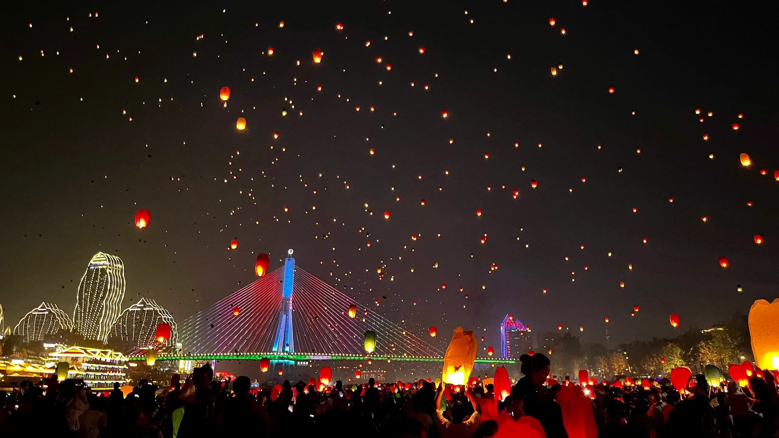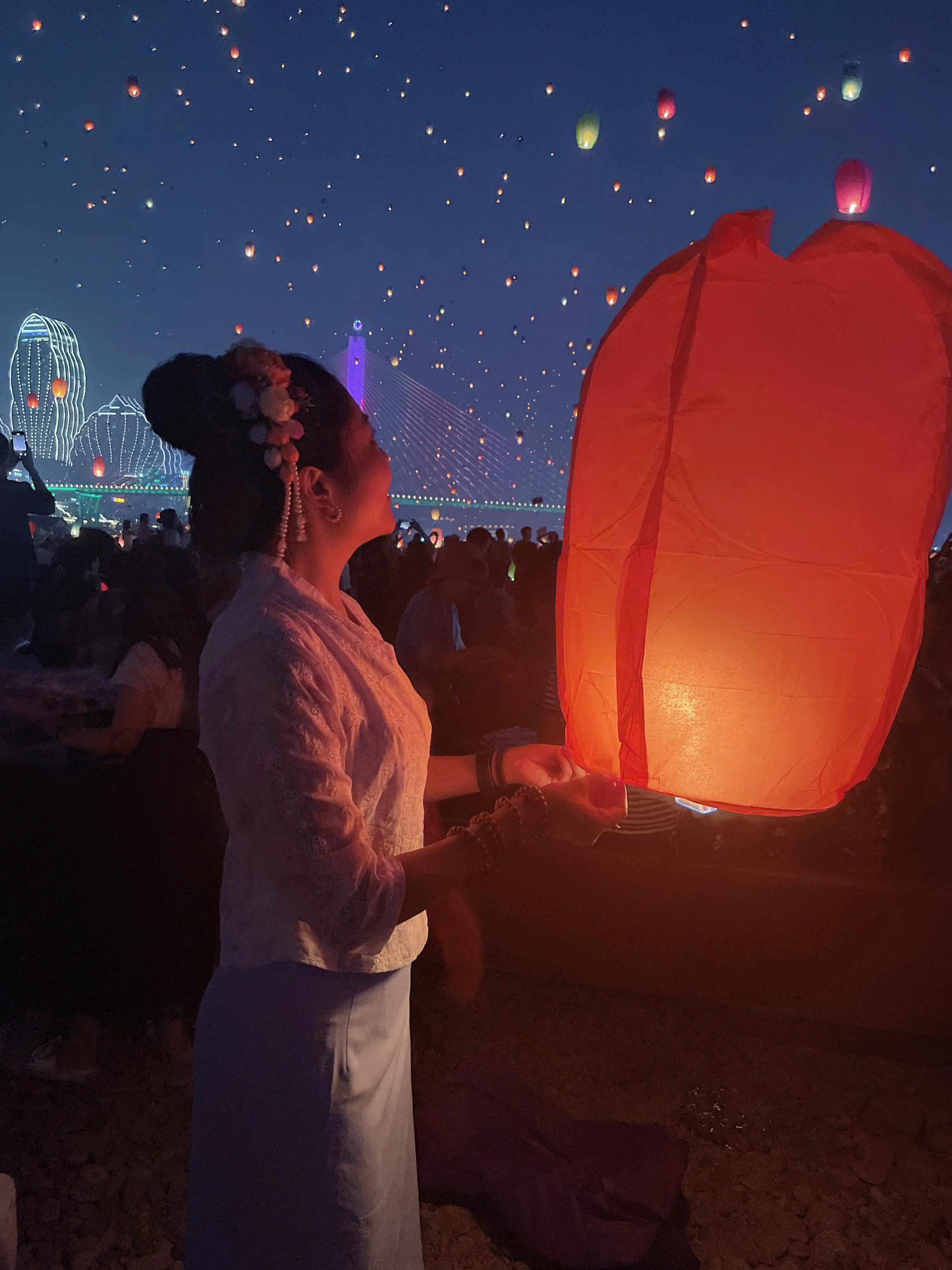 入夜後,一盞盞荷花水燈放上水面,順着流慢慢走遠,燈光在河上輕輕搖晃。夜空裏,孔明燈一個接一個升起──當地還會放一種由傳統傣紙與竹編製成的巨型孔明燈,象徵去舊迎新。民間也陸續開始放燈,等火苗升溫,讓紙燈慢慢鼓起來,再徐徐放開手掌。成百上千盞紙燈在江邊冉冉升起,那一夜,機場暫停航班,把天空留給祝福。