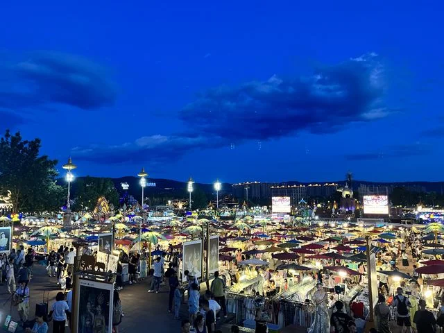 我一直以為自己只喜歡清朗的湖光山色,喜歡聽得見鳥鳴與水聲的地方。站在這樣的夜市邊緣,難免生出一點「眾人皆醉我獨醒」的小清高,覺得自己像被隔在世界之外。然而,從黃昏站到入夜,看着這熙攘的人群,我慢慢覺得,這裏的擁擠與喧鬧也是一種自然。最後,我走了進去,在夜市裏點了一碗河粉。