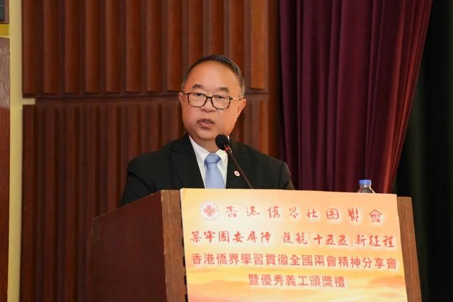 他指未來香港僑界社團聯會將深化兩會精神宣講,培育青年僑才;搭建交流平台,促進海內外資源對接;認真履職建言,架好橋樑紐帶,為「十五五」良好開局及中國式現代化建設貢獻僑界力量。
